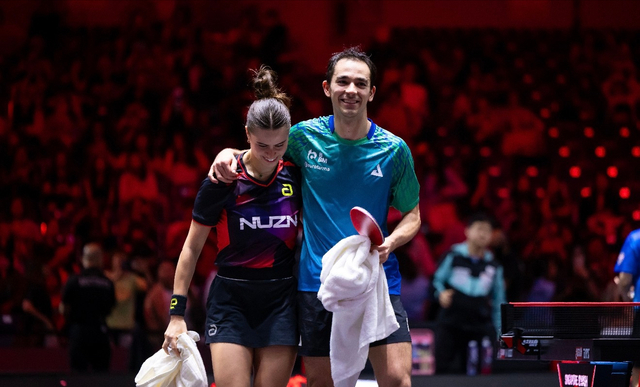 WTT新加坡大满贯决出了首枚金牌,巴西情侣档雨果/高桥布鲁娜出人意料的以3-0战胜世界第一林仲勋/申裕斌夺得冠军,且全场比赛仅用时27分钟。雨果/高桥布鲁娜不仅首夺WTT新加坡大满贯混双冠军,还成为了该项赛事历史上首对登顶的非亚洲组合。