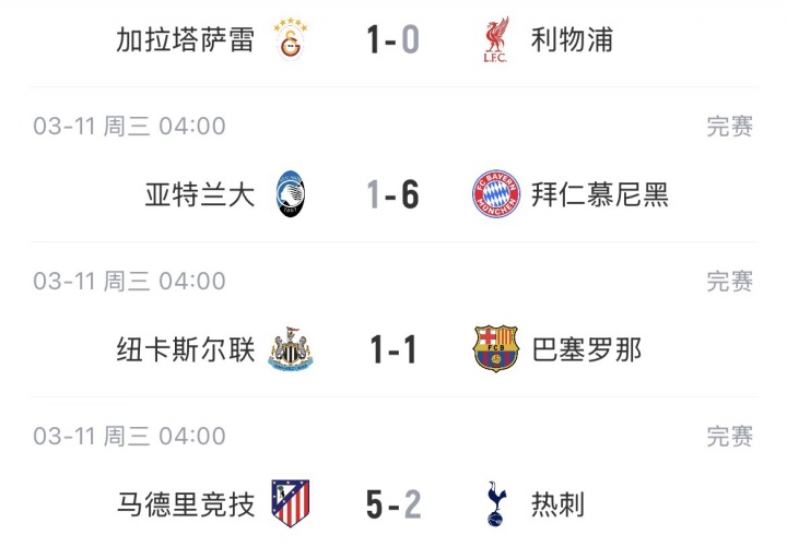 03月12日讯 欧冠1/8决赛首回合比赛结束,种子队只有拜仁客场取胜。
