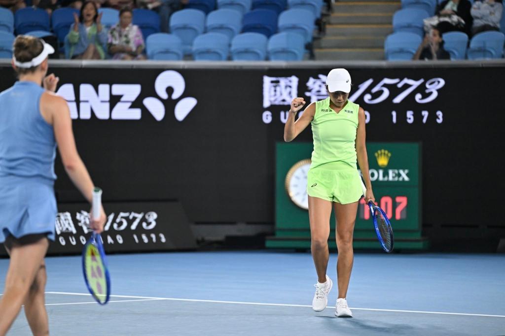 这是37岁的张帅时隔七年再次在澳网女双赛场捧杯,也是她职业生涯的第三个大满贯双打冠军头衔。